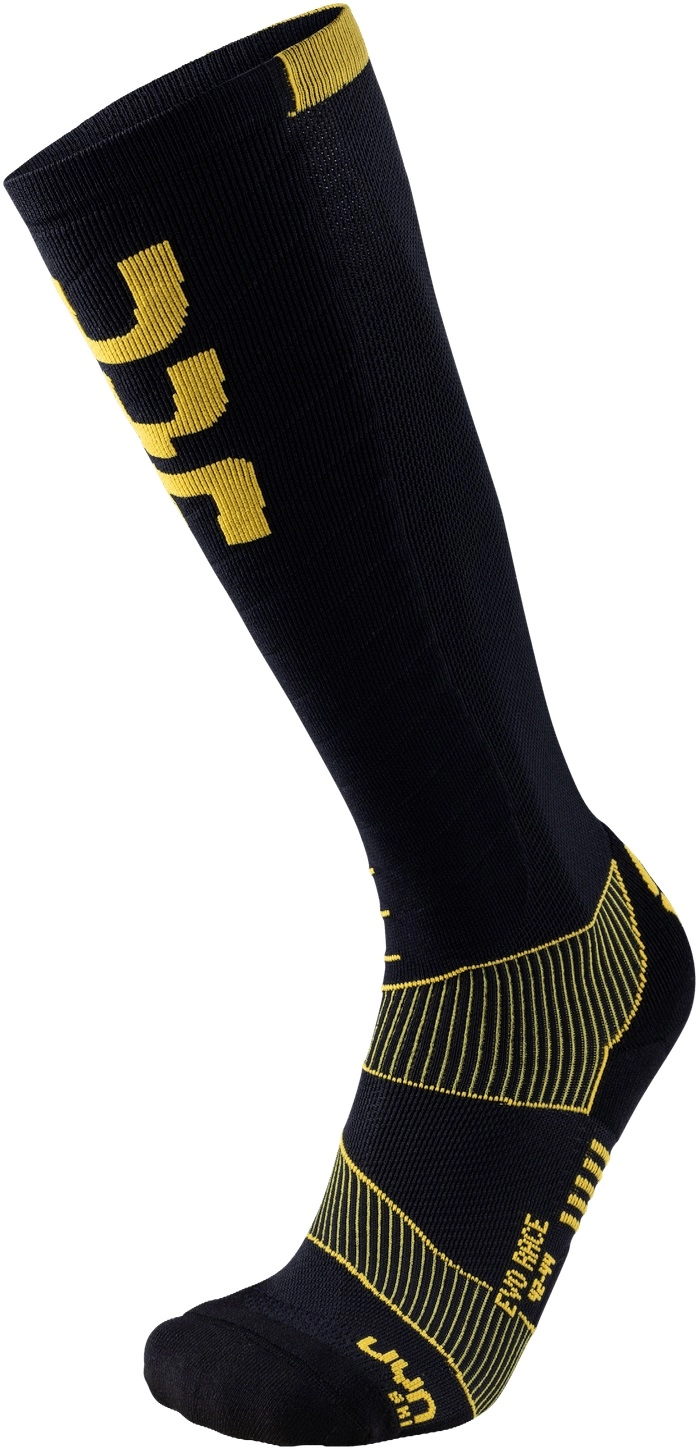 De skisok Evo Race van het merk UYN geeft u extra ondersteuning bij het skiën. De skisok heeft een compressie die voor extra ondersteuning zorgt aan uw voet. Verder zorgt de compressie voor een verhoogde doorbloeding in uw kuiten. Voordeel hiervan is dat spiervermoeidheid minder snel opduikt waarbij de skisok niet te strak zit en vernauwing niet aan de orde komt. U heeft met deze skisok optimale klimaatbeheersing en luchtcirculatie. Dit komt omdat de skisok is gemaakt van 100% plantaardige materialen. De sok is daarom erg comfortabel. Als laatste heeft de skisok een beschermende vulling aan de voorzijde voor uw schenen en een grip onder uw voet, zodat uw voet stabiel is en uitglijden niet voorkomt.