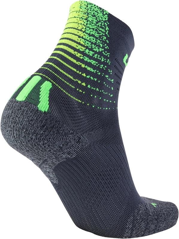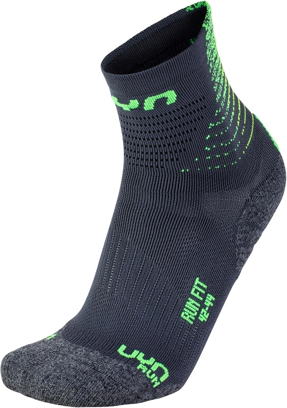 De Run Fit Sokken van het merk Uyn zijn sokken met een aantrekkelijke graphic die een vleugje kleur toevoegen aan uw sportoutfit. De sokken ebben Airfeel hightech garen waardoor de sokken buitengewoon elastisch en zacht zijn gecombineerd met ultralichte en ademende Texlyte Nano-vezels. Hierdoor voelen de sokken erg comfortabel aan, bij iedere stap. De sokken zijn verder voorzien van een 3D microkanaalstructuur voor een luchtcirculatie die uw voeten droog houden en op een aangename temperatuur. Het ergonomisch voetbed zorgt daarnaast voor atletische stress en beweging met compressie precies waar dit nodig is. Met deze sokken heeft u geen last van wrijving en de sokken hebben een laag model en zijn wasbaar op 40 graden.