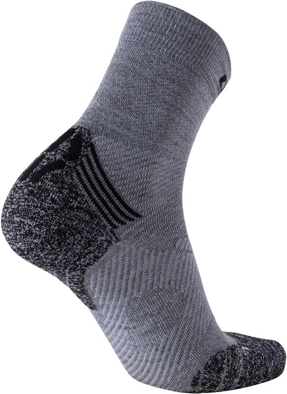 De Winter Pro Run sokken van het merk UYN zijn de ideale hardloopsokken op koudere dagen. De sokken hebben namelijk een effectieve warme-isolatie door middel van hoogwaardig Merinowol waarbij de sokken alsnog ademend zijn met een ideale luchtcirculatie. Door een 3D microkanaalstructuur is er een luchtcirculatie die uw voeten droog houdt en op een aangename temperatuur waarbij flexibele, anatomisch gevormde manchetten voor een betrouwbare grip zorgen zonder vernauwing. De sokken hebben verder een uitstekende ondersteuning door een ergonomisch voetbed en gelokaliseerde compressie precies waar dit nodig is. Er is een extra beschermstructuur onder de enkel en bij de achillespees en een wreefbeschermer en voorschokschild voor uitstekende schokabsorberende eigenschappen. De sokken hebben een hoog model en zijn wasbaar op 40 graden.