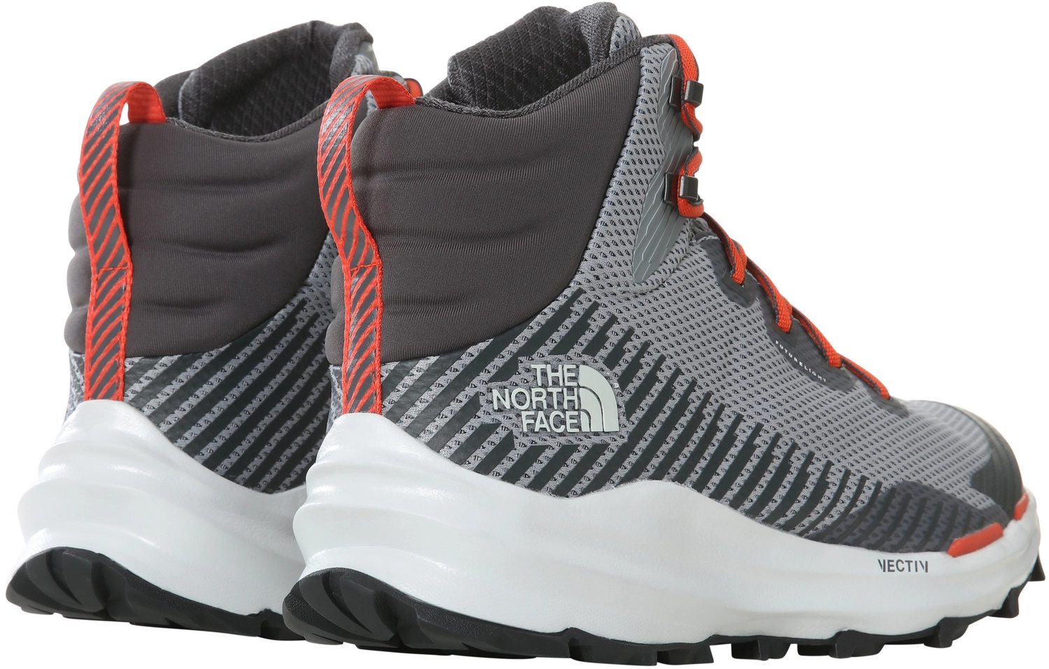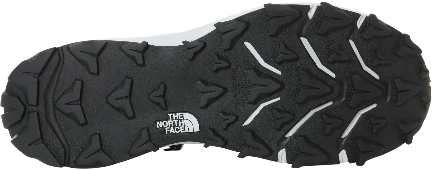 Deze wandelschoen is afkomstig uit de Vectiv Fastpack Mid Futurelight serie van het merk The North Face. De van rubber gemaakte schoen met een gewicht van 592 gram is voorzien van een slijtvast bovenwerk van prestatie-mesh. Het Futurelight™-membraan van de Wayroute heeft ademende en waterdichte eigenschappen, waardoor u met uiteenlopende weersomstandigheden op pad kunt. Daarnaast is de schoen voorzien van een dubbel geperforeerde oogreeks voor een fijn afgestemde vetersluiting en gegoten lycra kraag. Voor extra bescherming is er een TPU neus en niet-genaaid spatbord aanwezig. Het OrthoLite® X55™-voetbed gemaakt met 5% gerecycled rubber en de EVA-middenzool zorgen voor uitstekend comfort, waardoor u urenlang ongehinderd kunt lopen. Kenmerkend voor deze schoen is de VECTIV-technologie ontworpen om energie op het parcours te maximaliseren. Verder helpt de Single-density 3D TPU-plaat onder de voorvoet bij multifunctionele stabiliteit. De geometrie van de Rocker-middenzool is ontworpen om langdurige voorwaartse bewegingen te creëren. Verder is de Surface Control™ rubberen buitenzool met 4mm noppen ideaal voor het wandelen.