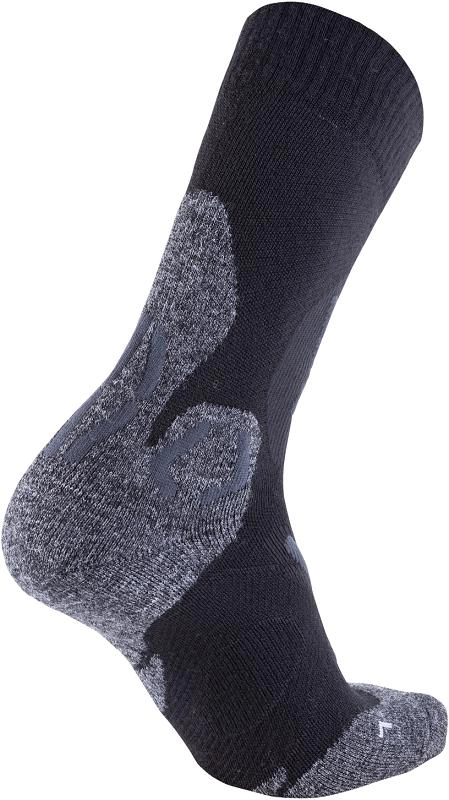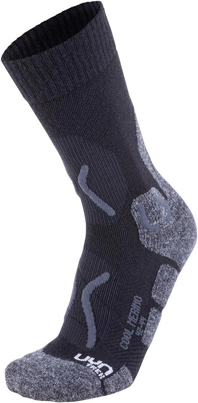 De Trekking Cool Merino wandelsokken van het merk UYN zijn comfortabele wandelsokken met een koelende luchtcirculatie tussen huid en stof. De wandelsokken zijn namelijk voorzien van een 3D microkanaalstructuur voor een luchtcirculatie die uw voeten droog en op een aangename temperatuur houdt. De sok heeft verder een frontale 3D structuur die schokken absorbeert waarbij en compressie is precies waar dit nodig is. Het ergonomische voetbed is speciaal ontworpen voor atletische stress en beweging met extra bescherming bij de gevoelige achillespees. De wandelsokken hebben tot slot een geïntegreerde bescherming in het scheenbeen die de druk vermindert tijdens activiteiten. Met deze wandelsokken kunt u dus altijd zonder zorgen en comfortabel op pad. De wandelsokken hebben hoog model en zijn wasbaar op 40 graden.