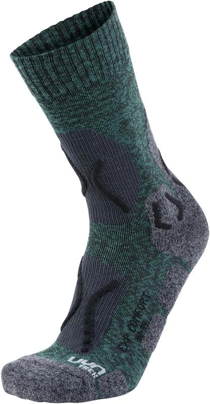 De Trekking Explorer Comfort Wandelsok van het merk UYN is de ideale wandelsok voor langere verkenningstochten. Dit komt doordat de wandelsok een hoog draagcomfort heeft met een goede pasvorm, ademend vermogen en ondersteunende en beschermende eigenschappen. Het ergonomische voetbed zorgt voor een fijn comfort met goede ondersteuning en een 3D microkanaalstructuur zorgt voor luchtcirculatie die uw voeten droog en op een aangename temperatuur houden. De wandelsok heeft verder een enkelbeschermer geïntegreerd in het scheenbeen die de druk vermindert en een frontale 3D gebreide structuur die de schokken opvangt en tegelijkertijd zorgt voor voetventilatie en luchtstroom. De wandelsok is een hoog model en is wasbaar op 40 graden.