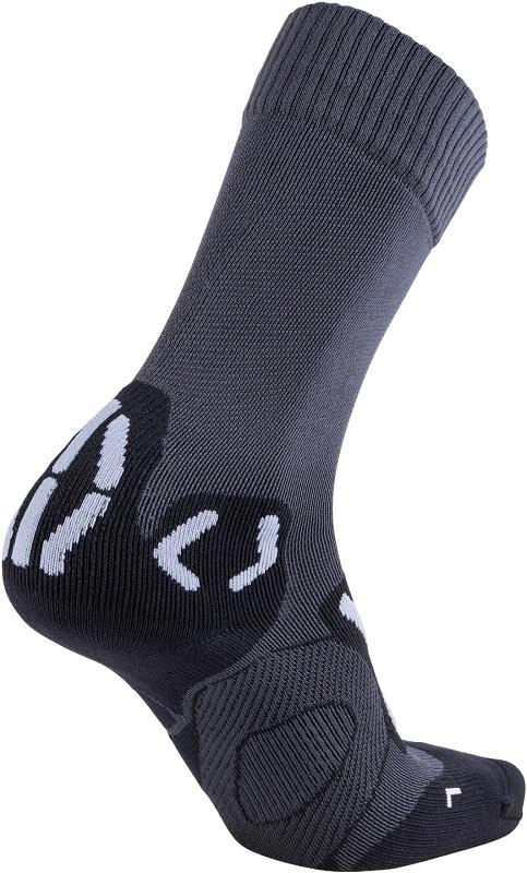 De Trekking Outdoor Explorer Mid Wandelsok van het merk UYN is de ideale wandelsok als u comfortabel op pad wilt gaan. De wandelsok zal namelijk niet knellen en wegglijden en blijft comfortabel met een goede ondersteuning en bescherming van gevoelige zones zoals de enkel en achillespees. Een frontale schokabsorberende 3D-structuur zorgt voor goede schokabsorberende eigenschappen en tegelijkertijd voor een efficiënte voetventilatie. De voetventilatie wordt tevens bevorderd door een 3D microkanaalstructuur die zorgt voor een luchtcirculatie die uw voeten droog en op een aangename temperatuur houden. Het anatomisch gevormde voetbed zorgt voor ondersteuning bij atletische stress en beweging en een geïntegreerde enkelbeschermer in het scheenbeen vermindert de druk tijdens het wandelen. Deze wandelsok heeft dus alles wat u nodig heeft voor een geslaagd wandelavontuur.